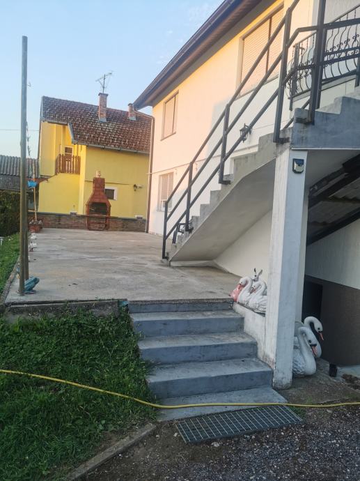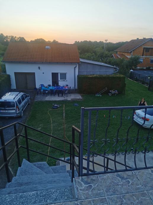 U dvorištu je dvorišna zgrada 70m2- sastoji se od ljetne kuhinje s kupaonom , garaže s stepeništem u potkrovlje. Na zgradi je PVC stolarija.