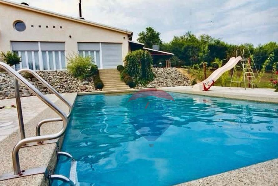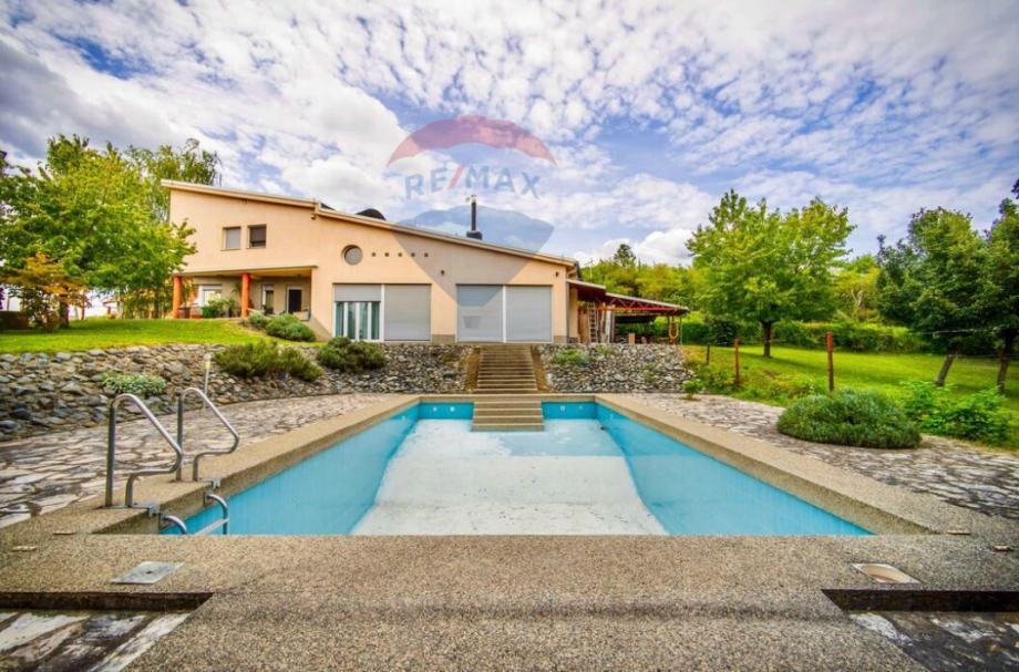 Vanjski prostor ove izuzetne nekretnine nudi prostrani vrt, terasu i bazen, što omogućuje opuštanje i uživanje na otvorenom. Okružena zelenilom, kuća nudi prekrasan pogled na grad i idealno je mjesto za obiteljske trenutke i prijateljska druženja.