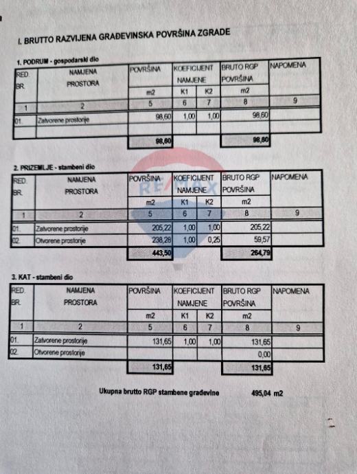 Prostire se na ukupno 434 m² stambenog prostora, raspoređenih na tri etaže: podrum, prizemlje i kat.