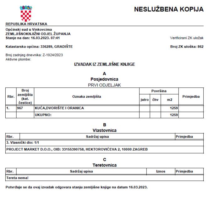 Ovaj oglas nije ponuda za zaključivanje kupoprodajnog ugovora, već svaka zainteresirana osoba treba poslati svoju ponudu za kupnju nekretnine.
