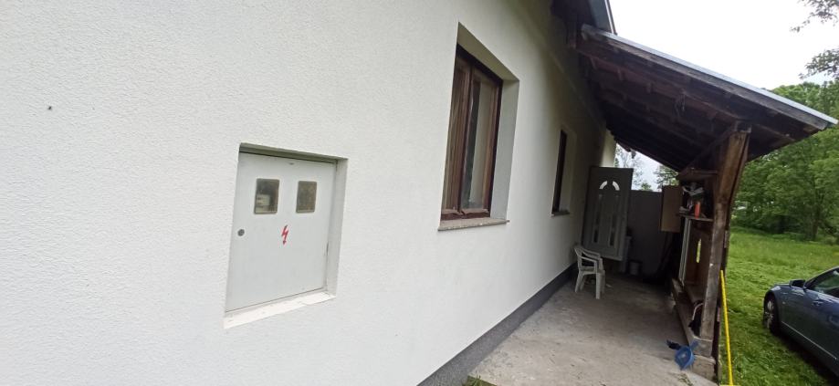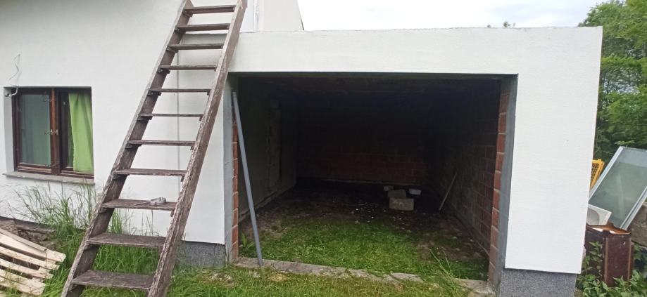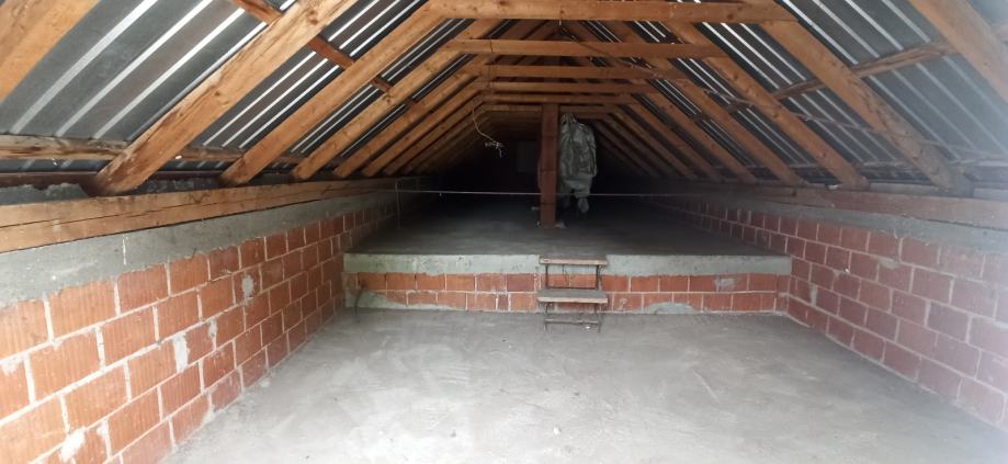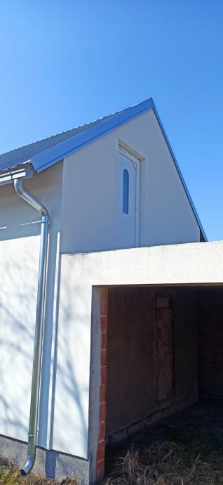 Prizemlje kuće sastoji se od uređenog većeg dvosobnog stana s kuhinjom i kupaonicom površine 64 m2 i garaža 25 m2 a iznad su potkrovlje 64 m2 i terasa 24 m2. Parcela ima 2906 m2.Kuća se nalazi uz asfaltnu cestu s priključkom struje i vode a ima i svoj bunar.