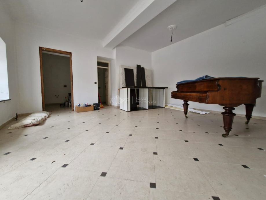 U prizemlju površine 60m2 nalaze se tri veće prostorije i wc. Prizemlje je odvojeno vanjskim stubištem od prvog kata i visokog potkrovlja.