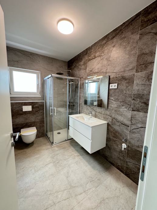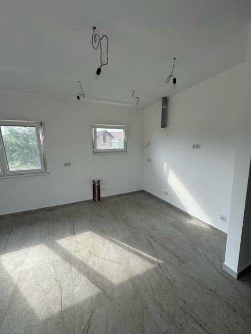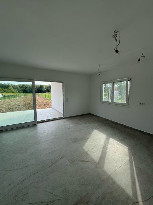 Prostorije: dvije spavaće sobe, open-space dnevni boravak s kuhinjom i blagovaonicom, kupaonica, ostava i natkrivena terasa.