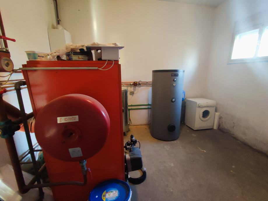 Grijanje je etažno plinsko sa bezžićnim regulatorom topline uz spremnik tople vode od 500l.