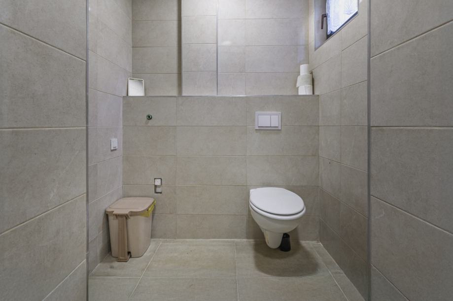 Prizemlje: moderno opremljena kuhinja, dnevni boravak, kupaonica s walk-in tušem i toalet.