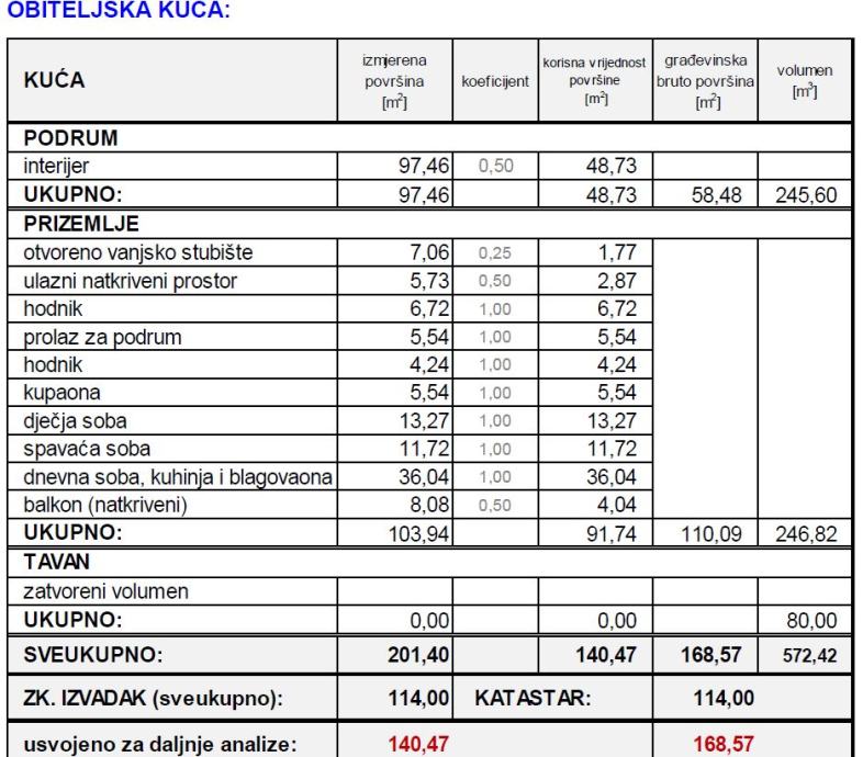 Površina kuće je 201,40 m2 (površine prostorija u slikama)