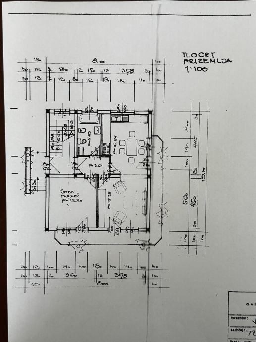 Opis kuće: Prizemlje-Ulaz,kupaonica sa kadom i wc-om,kuhinja,boravak i blagavaonica,spavaća soba 1,spavaća soba 2.