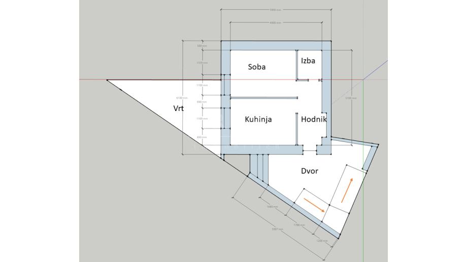 Prizemlje: hodnik, kuhinja, ostava i soba - 25 m2