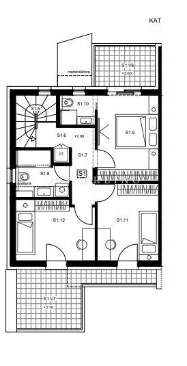 KAT se sastoji od tri spavaće sobe, dvije kupaonice, dvije loggie i dvije terase.