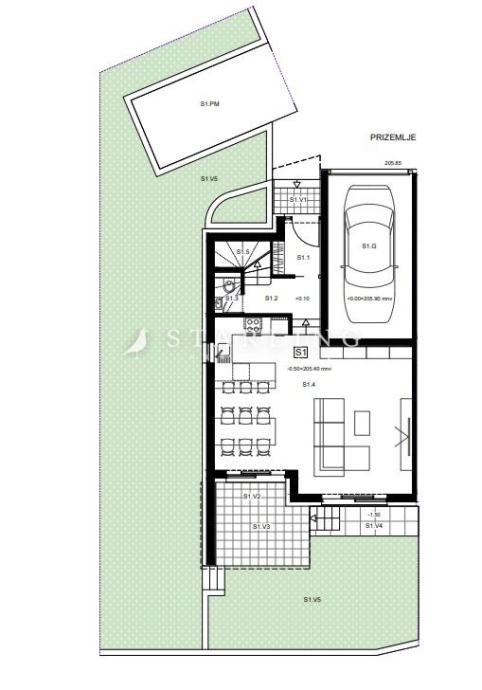 PRIZEMLJE S VRTOM sastoji se od dnevnog boravka s kuhinjom i blagovaonicom, wc-a i loggie.