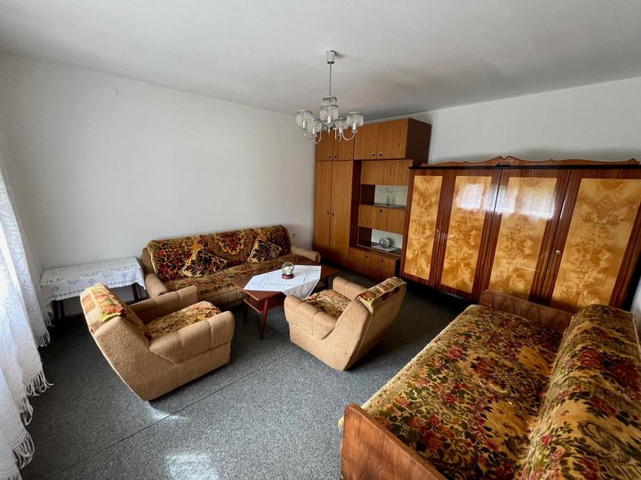 Kuća je veličine 90m2, sastoji se od ulaza, blagovane, kuhinje, špajza, kupaone i dvije sobe. Pod polovicom kuće je podrum. Stolarija je drvena, a krov je crijep koji je u super stanju.
