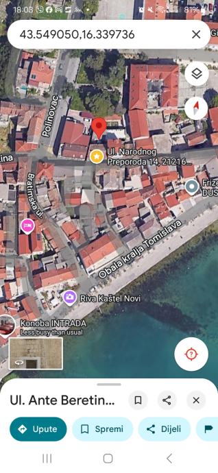 Lokacija je 30m od rive, najljepšeg i turistički najatraktivnijeg dijela Kaštela. Teško je pronaći ovakvo nešto s ovom lokacijom.