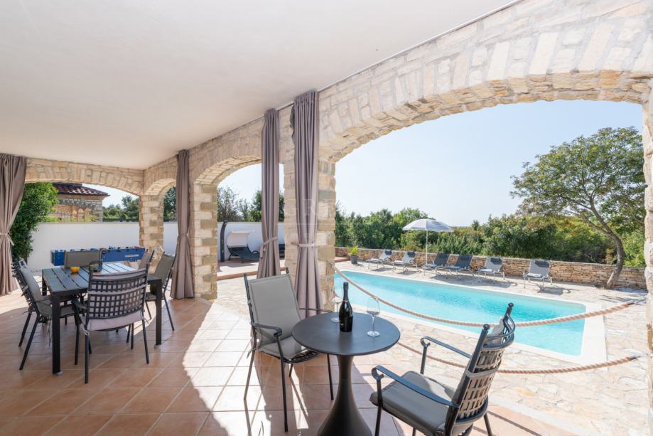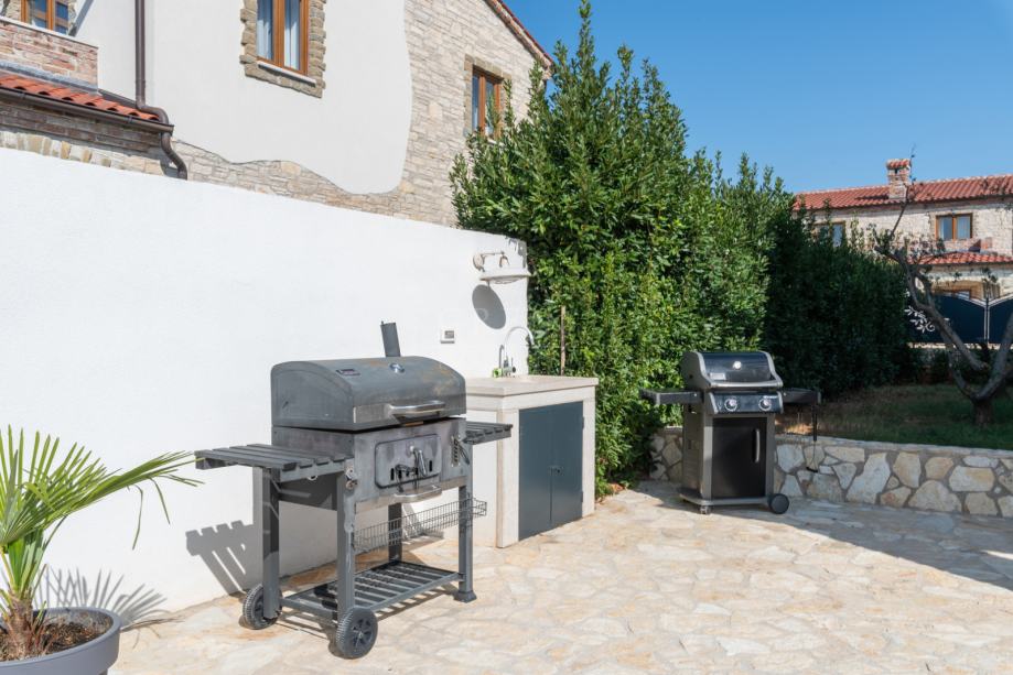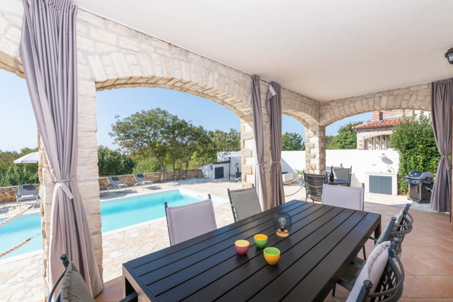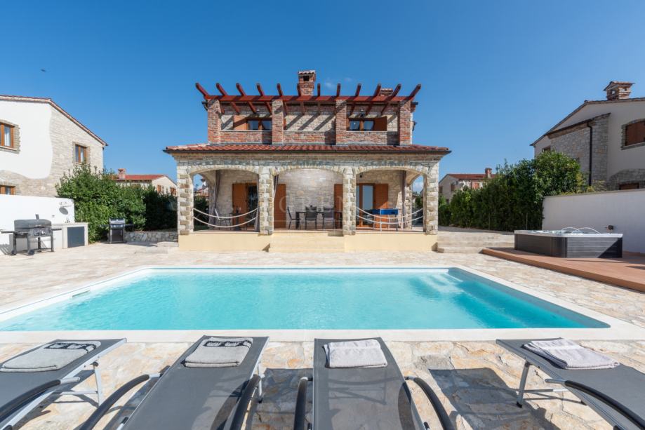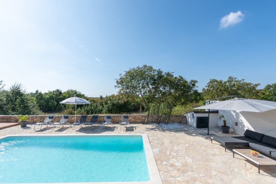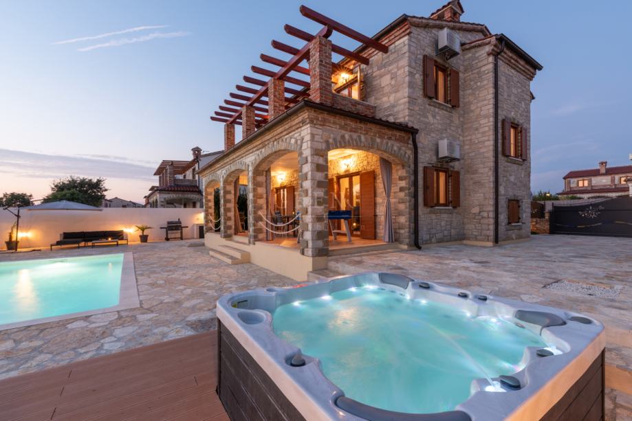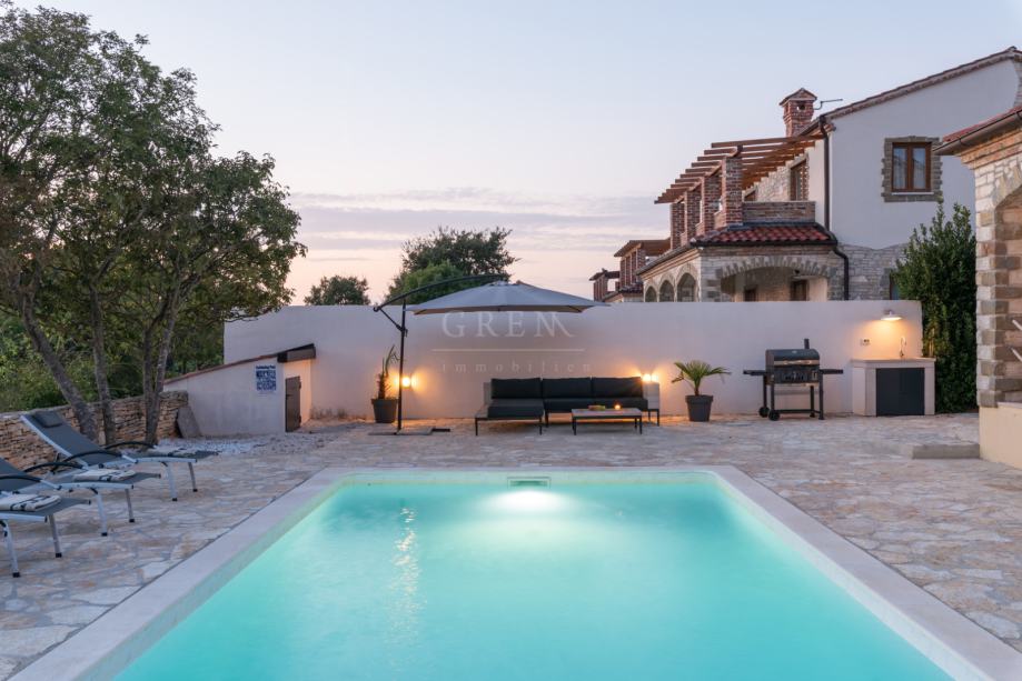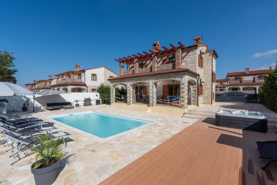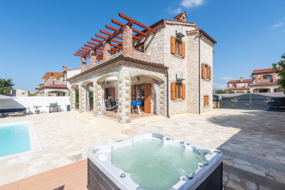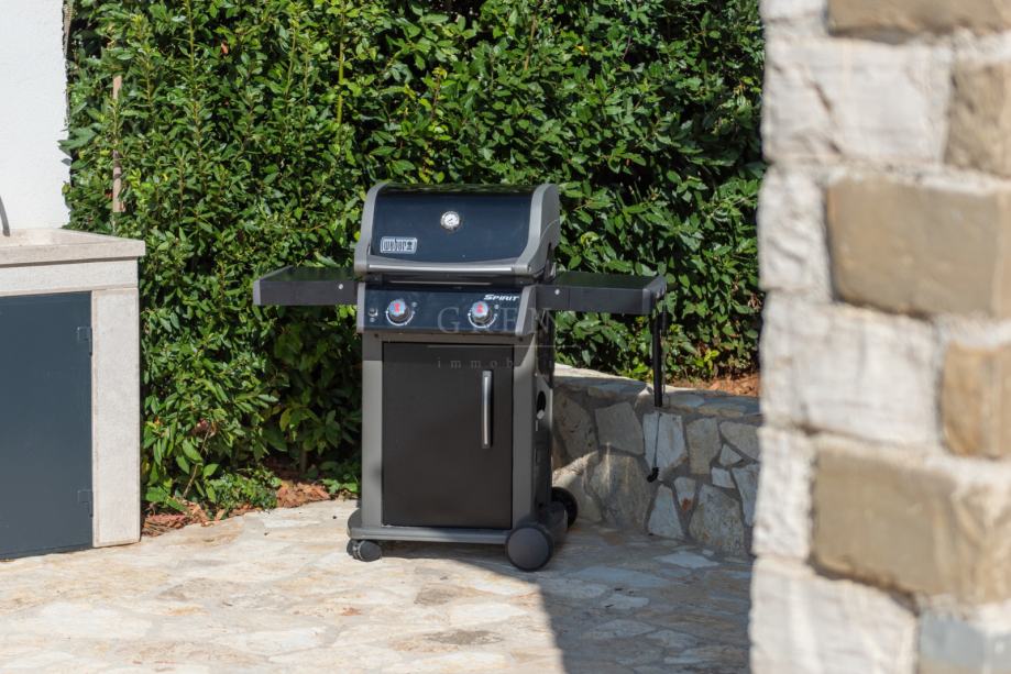 Prekrasan bazen, vanjski jacuzzi, roštilj, okučnica, prekrasan pogled na zelenilo i prirodu.