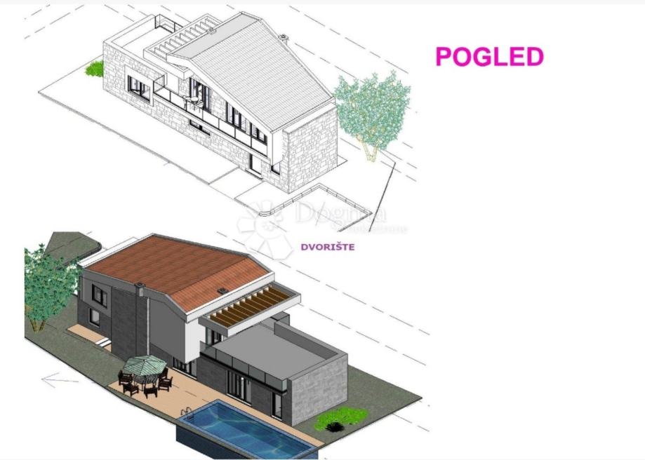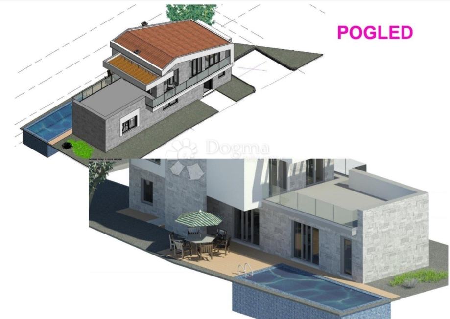 Kuća u izgradnji s bazenom i panoramskim pogledom na more. (prodaja)