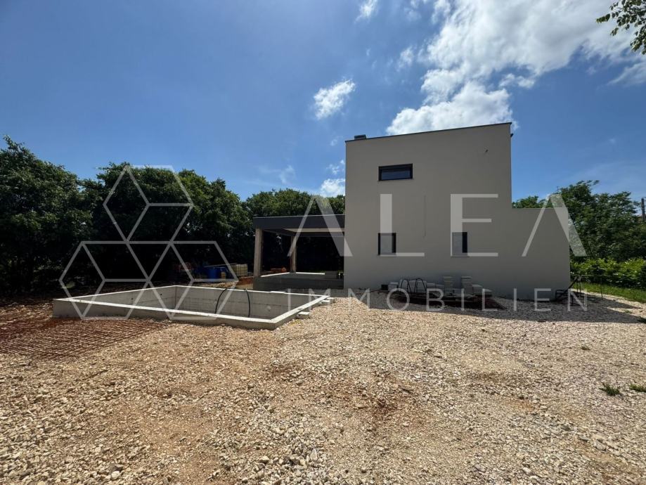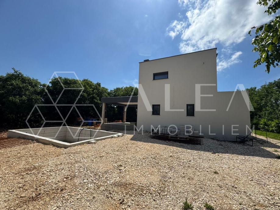 Prodaje se moderna kuća u fazi visokog roh-bau standarda, smještena na mirnoj lokaciji svega 3 km od centra Labina. Kuća se prostire na dvije etaže i ukupno 160 m² stambene površine, na prostranoj parceli od 970 m², s privatnim bazenom i lijepim pogledom na okolnu prirodu.