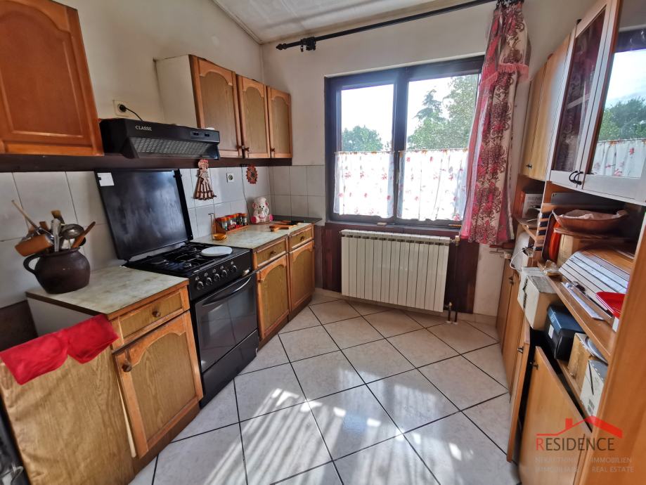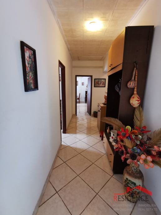 Prodajemo kuću u Jadreškima, površine 299 m2 na okućnici od 1207 m2. Kuća se vodi kao zgrada mješovite uporabe te se sastoji od suterena i dvije etaže. U suterenu se nalazi podrum površine 25 m2. Prizemlje se sastoji od poslovnog i stambenog dijela. Poslovni dio je površine 72.50 m2 i pogodan je za razne djelatnosti dok se stambeni dio sastoji od hodnika, kuhinje sa dnevnim boravkom, sobe i kupaonice. Na prvi kat kuće vode vanjske stepenice gdje je smještena prostrana terasa od 24 m2. Kat se sastoji od ulaznog hodnika, kuhinje, blagovaonice, dnevnog boravka, 3 spavaće sobe, kupaonice i dva balkona od kojih se jedan proteže cijelom dužinom kuće. Kuća ima centralno grijanje na lož ulje. Grijanje/hlađenje na prvom katu je pomoću klima-uređaja ali postoji i mogućnost grijanja na drva. Kuća je namještena i useljiva, po želji budućeg vlasnika potrebna dodatna ulaganja. Udaljenost od centra Pule 5 km, od mora 4 km, a zračne luke 4 km.