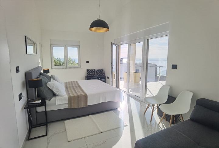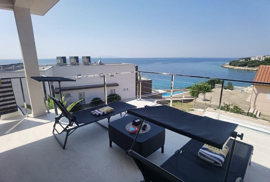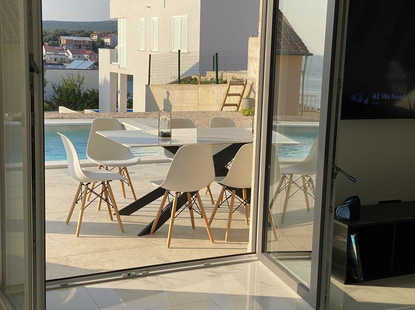 Vila ima 4 sobe, tri parkinga i više terasa s pogledom na more i najljepši pogled na zalazak sunca na otoku Pagu.
