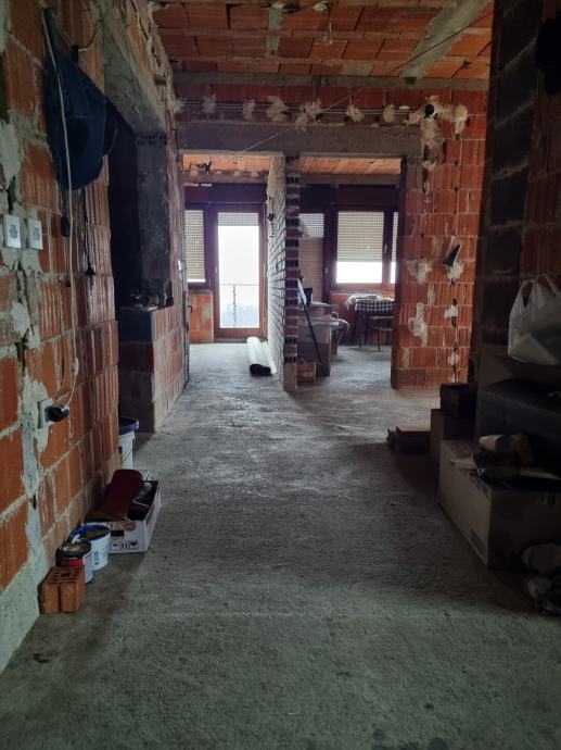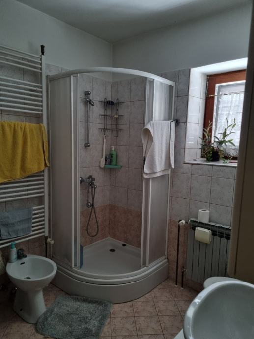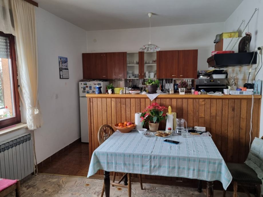 Prizemlje je uređeno i sastoji se od 2 spavaće sobe, dnevnog boravka, kuhinje s blagovaonicom, kupaonice i zasebnog WC-a, dok je 1. kat potrebno dovršiti (razvedene električne instalacije). Moguće je izvesti i zaseban ulaz te formirati dva odvojena stana svaki po 100 m² stambene površine.