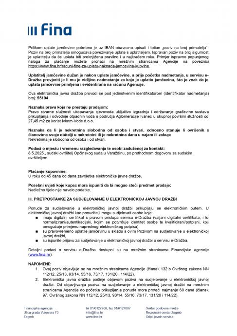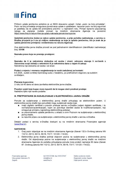 Druga elektronička javna dražba počinje 19.09.2025.g. u 15:00:00 sati.