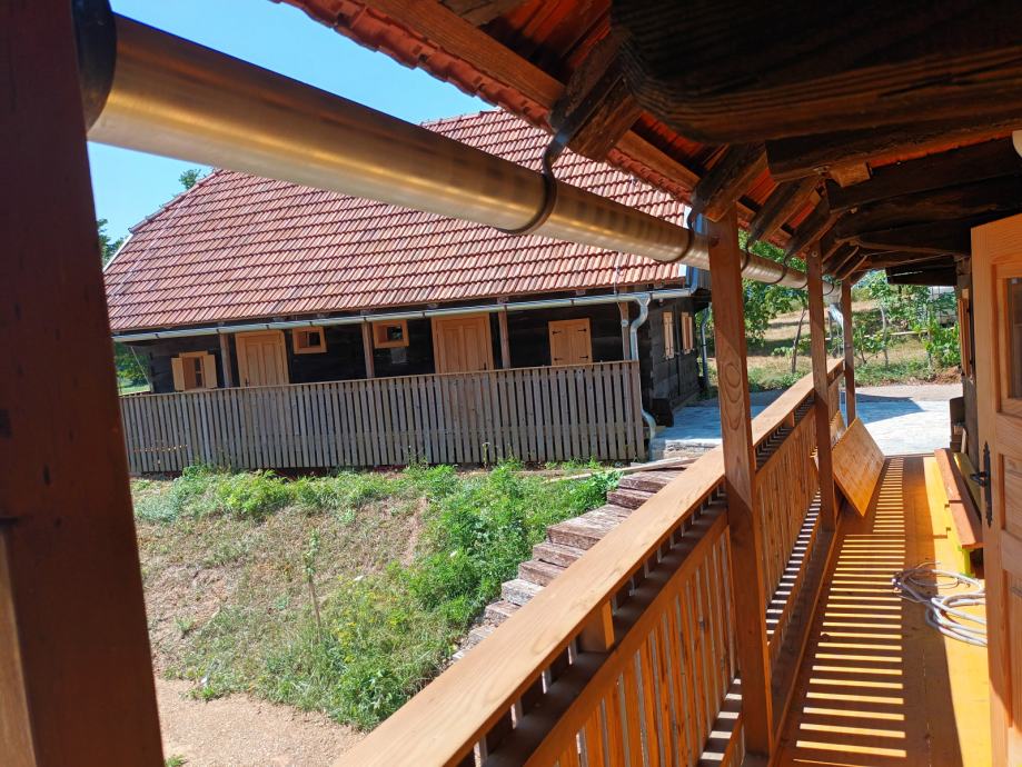 Moguća prodaja 2 drvena objekta povezana kamenom terasom prema građevinskoj dozvoli izgrađena kao jedinstveni objekt-kao adaptacija i dogradnja ili samo 1 objekta sa ili bez poljoprivrednog zemljišta (u kojem slučaju se proporcionalno smanjuje cijena). Kuće imaju 3 potpuno namještena apartmana (jedna ima 2, a druga 1 apartman + 1 apartman za domaćina) s dozvolama za iznajmljivanje i uhodanim poslom - rade više od 2 godine. Lokacija je na brežuljku s pogledom na okolna brda i planinu Klek, 10 km od Ogulina i od Jezera Sabljaci. Udaljeno od mora cca 45 minuta te isto tako od Plitvičkih jezera, a od Zagreba autocestom sat vremena. Zvati na 098548524.