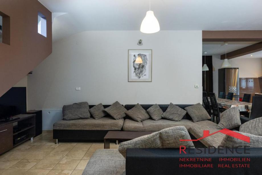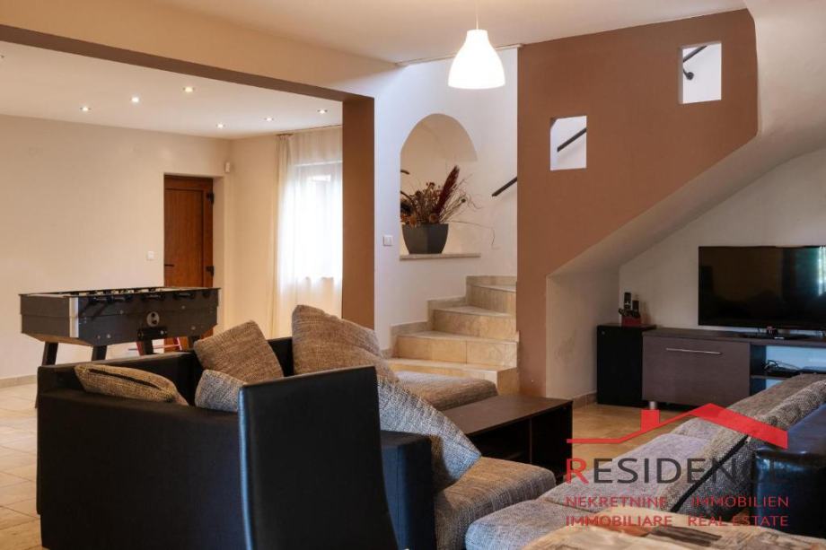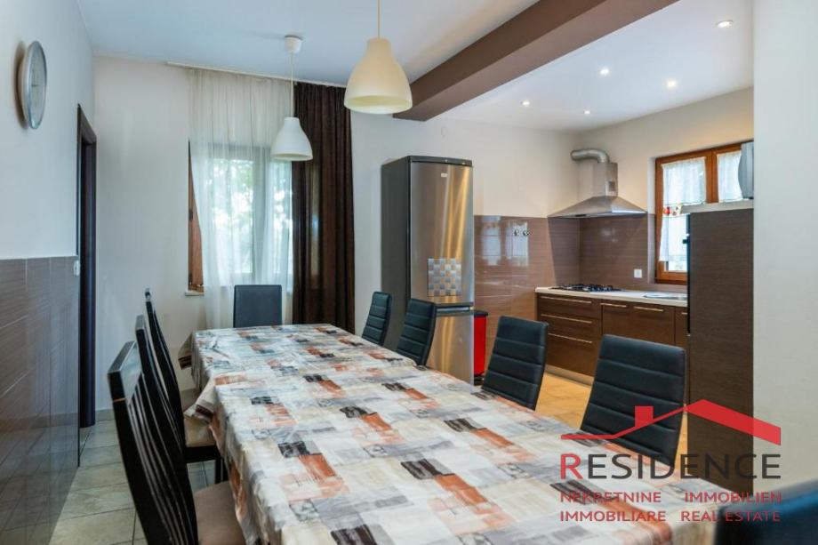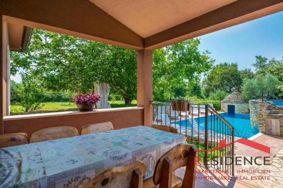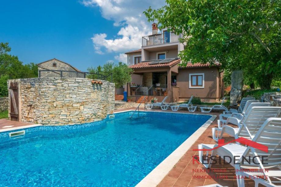 Vendiamo una villa indipendente con piscina nelle vicinanze di Svetvičent. Superficie totale 240 mq. Cortile 599 m2. Al piano terra si trova la cucina con sala da pranzo, un soggiorno e una camera da letto con bagno e toilette separata. Dal soggiorno si accede ad una terrazza coperta con barbecue. Al primo piano ci sono tre camere da letto, ciascuna con il proprio bagno. Una delle camere ha una terrazza. Nella mansarda si trova un'altra camera da letto con bagno e terrazzo Tutte le camere sono dotate di aria condizionata. Il riscaldamento è centralizzato a pavimento nel soggiorno, mentre nelle camere sono installati i termosifoni. Basta acquistare una stufa a pellet o legna e collegare l'impianto. Centrale solare. Classe energetica B. Posto auto coperto per auto e spazio per biciclette. La piscina è di 45 m2 con una forma specifica e Kažun istriano. Seminterrato di 19 m2.