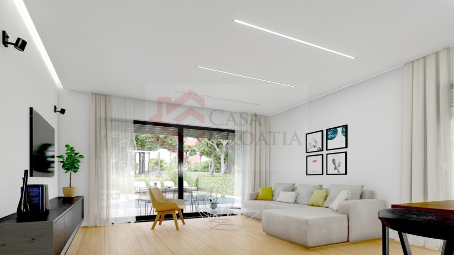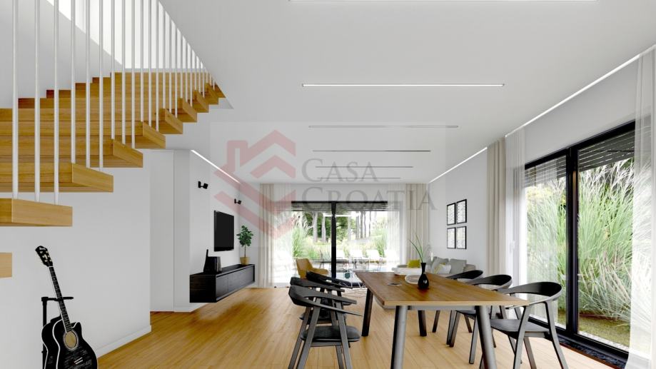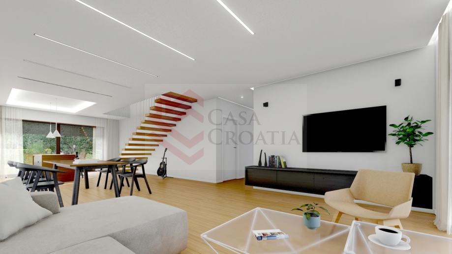 Ukupne neto korisne površine 232,73 m2 u Kakmi blizu Biograda na moru, trenutačno u gradnji na parceli površine 734 m2.Ulaz u stambenu građevinu je s ulične strane sa sjeverozapadne strane parcele. Na sjeverozapadnom pročelju su smještena ulazna vrata za svaku stambenu jedinicu.U prizemlju stambene jedinice oznake S1 ukupne neto korisne površine 52,91 m2 smješten je prostor dnevnog boravka, kuhinje i blagovaonice, te kupaonica. Jednokrakim zavojitim stubištem se dolazi na 1. kat stambene jedinice oznake S1. Na 1. katu je smještena spavaća soba.U prizemlju stambene jedinice oznake S2 ukupne neto korisne površine 179,82 m2 smješten je ulazni prostor sa sanitarnim čvorom i prostorom tehnike, te prostor dnevnog boravka, kuhinje i blagovaonice. Iz dnevnog boravka se izlazi na vanjski prostor natkrivene terase. Iz prostora dnevnog boravka se jednokrakim stubištem dolazi na 1. kat stambene jedinice oznake S2. Na 1. katu su smještene četiri spavaće sobe i četiri kupaonice, te dvije vanjske natkrivene terase.Visina od najniže kote konačno zaravnatog terena uz građevinu do gornjeg ruba nadozida krova stambene građevine iznosi 6,60 m. Stambena građevina je smještena u središnjem dijelu građevinske čestice. Stambena građevina je od jugozapadne međe udaljena 3,00 m, od sjeverozapadne međe je udaljena 5,00 m, od sjeveroistočne međe je udaljena 13,03 m, a od jugozapadne međe udaljena 13,00 m.KONSTRUKCIJA, OBRADAKonstrukcija i izolacija