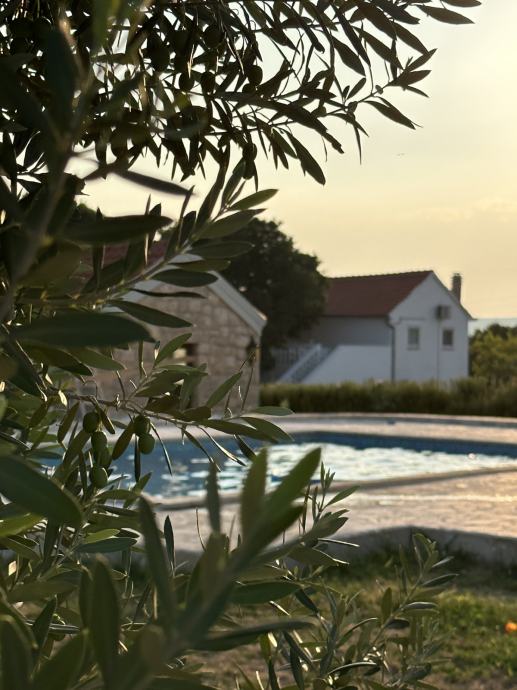U dvorištu površine 600m2 nalazi se bazen te dva pomoćna objekta,kamena konoba(50m2) te manja kućica(50m2) koja može biti samostalna za iznajmljivanje.