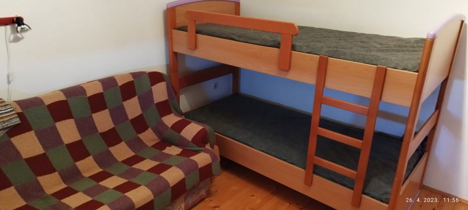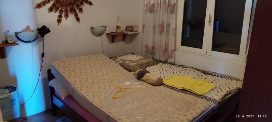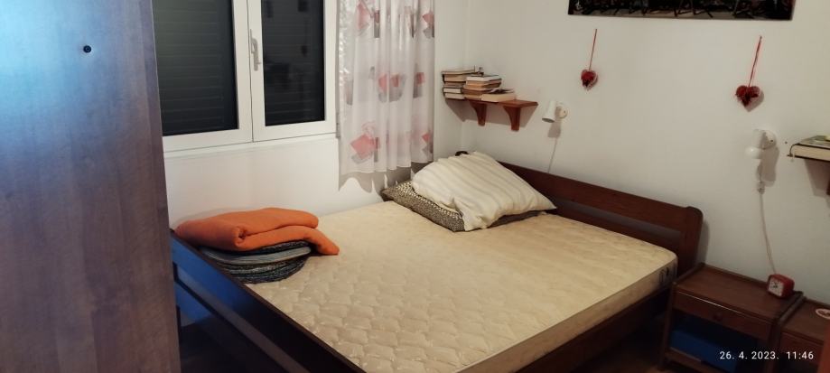 Dvije spavaće sobe, kupatilo i wc, kuhinja s dnevnim boravkom, terasa, ostava, PVC prozori, klima uređaj, termo peć. ODMAH USELJIVO.