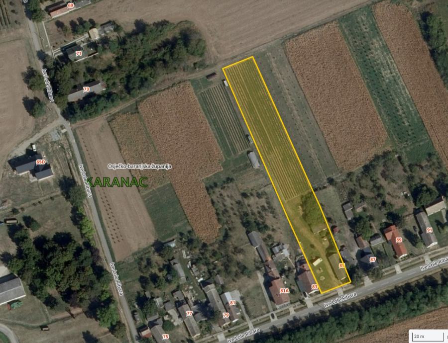 Prodajem kuću 176m2 s velikom okućnicom i oranicom 4100m2, Karanac, Ive Lole Ribara 85, kč.r. 638. Cijena po dogovoru. (I)