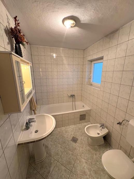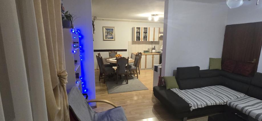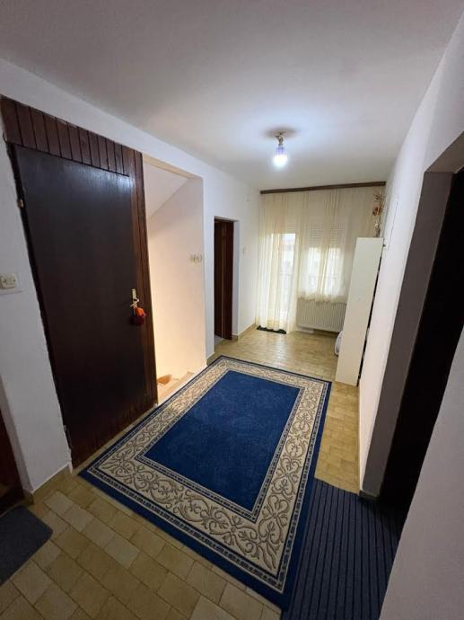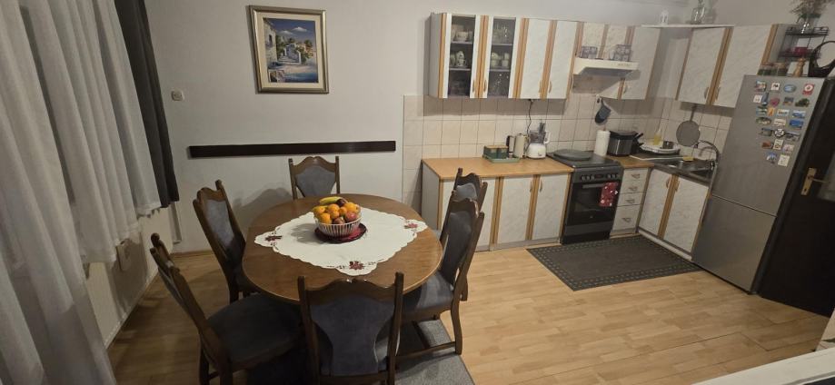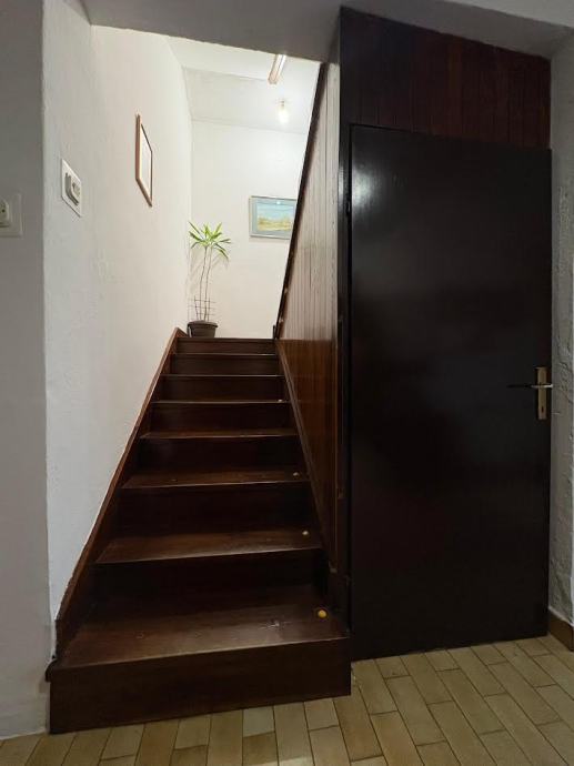 PRIZEMLJE: spavača soba, kupaonica(kada)sa WC-om, spremište za centralno grijanje (DRVA) u jednoj velikoj cjelini se nalazi Kuhinja, blagovaona i dnevni boravak sa izlaskom u dvorište, na betoniranu terasu i travnata površina vrta..iSPRED KUĆE CE NALAZI PROSTOR GDJE SE MOGU PARKIRATI 4 VOZILA.Kotlovnica za centralno grijanje se nalazi u prostoriji bočno od stepeništa koje vode na prvi kat.