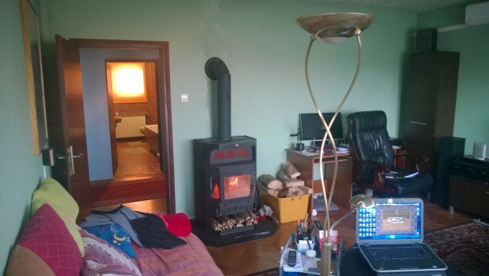 Nekretnina ima centralno grijanje na lož ulje i na svakom katu po jedna peć na drva, četri dimnjaka su u kući.