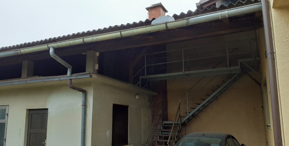 U dvorištu je 1 otvoreno ali natkriveno parkirno mjesto, 2 garaže, ljetna kuhinja u kojoj je peć za centralno,
