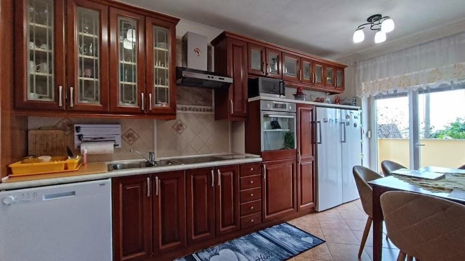 Stan na katu uključuje ulaznu verandu, kuhinju s dnevnim boravkom i izlazom na veliku terasu, hodnik, dvije spavaće sobe, kupaonicu te manju prostoriju koju novi vlasnici mogu prilagoditi prema vlastitim željama, bilo kao dodatnu spavaću sobu ili ostavu.