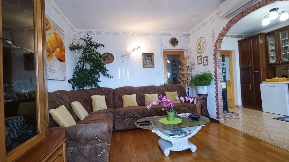 Na prodaju je predivna samostojeća kuća s dva odvojena stana, ljetnom kuhinjom, spremištem i njegovanom okućnicom, smještena na parceli od 800 m².