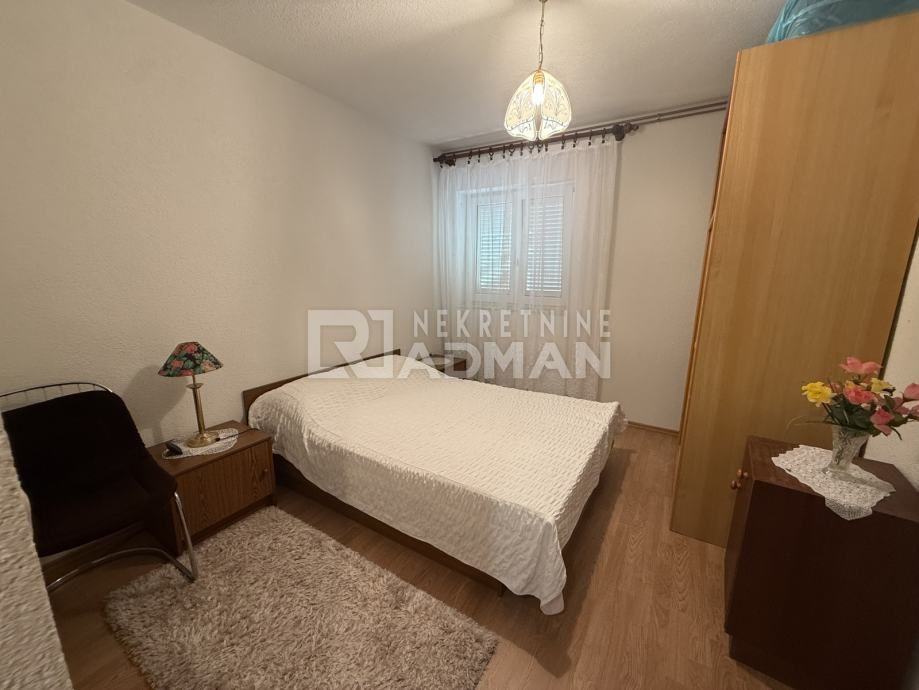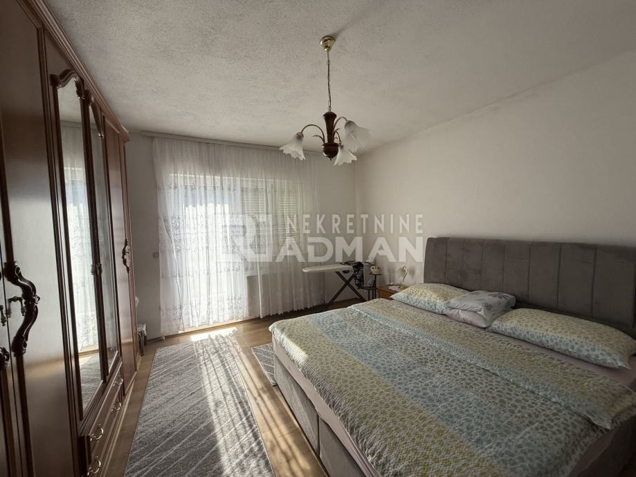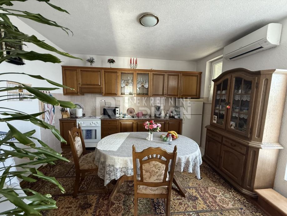 Na etaži prvog kata -trosoban stan, sa popratni prostorijama , balkonom i nenatkrivenom terasom, otvorenim vanjskim stepeništem; Potpuno namješten i opremljen aparatima.