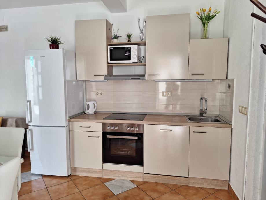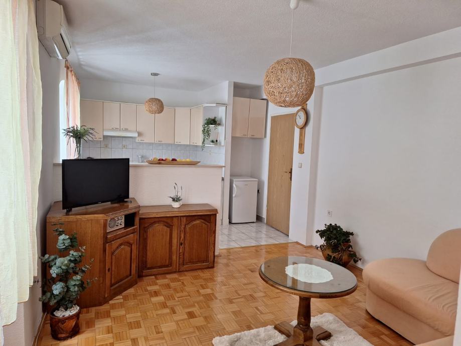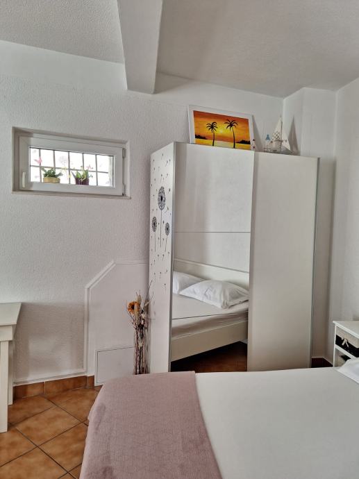 U prizemlju se nalazi Studio apartman od 50 m2 s orijentacijom jug, a na sjevernoj strani podrum od 15 m2 koji služi kao spremište za čitav objekt. Studio apartman je opremljen svim aparatima, mašinama i namještajem potrebnim za moderan i ugodan život. Ima dva ulaza, oba s juga s ulice.