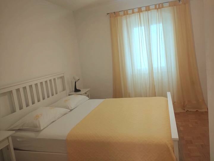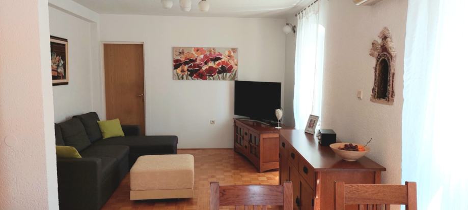 Na drugi kat se dolazi unutarnjim stepenicama i tu je pozicioniran trosobni stan od 85 m2. Posjeduje dva kupatila, jedno manje bez vanjskog otvora i drugo veće sa prozorom. Dnevni boravak i dvije sobe su orijentirani prema jugu a samo treća soba ka sjeveru. I ovaj stan je također potpuno opremljen te ne treba nikakva ulaganja.