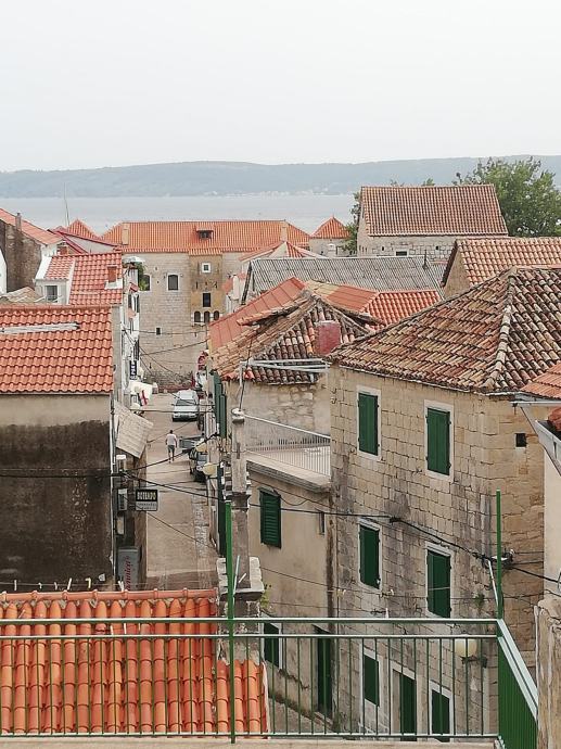 Na treći kat se također dolazi unutarnjim stepenicama gdje se nalazi jednosobni stan u visokom potkrovlju od 65 m2 sa velikom terasom od 25 m2 i lijepim pogledom s juga na okolna kamena zdanja i more, a na sjeveru na naš Kozjak. Ovaj stan je pregrađen i zatvoren s nalivenim estrihom ali nije inkartan te nema pločice ni parkete. Krov je drveni sa svim izolacijama s ugrađena tri luminara s juga koja posebno krase i osvjetlavaju ovaj stan, a u kupatilu je Veluxov krovni prozor. Sve su instalacije (voda i struja) provedene.