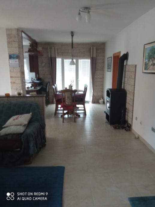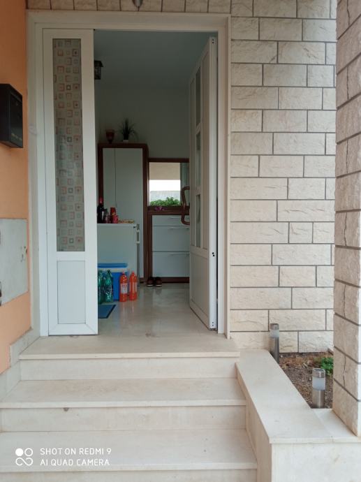 Prizemlje je veliko predsoblje, prostrani dnevni boravak sa kuhinjom i trpezarijom, dvije sobe kupatilo i velikom terasom.
