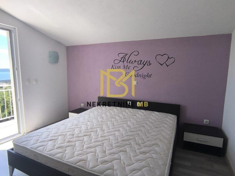 Sastoji se od predprostora, kuhinje s blagovaonicom i dnevnim boravkom, izbe, četiri spavaće sobe, kupaonice, dodatnog WC-a, terase te natkrivenog i nenatkrivenog balkona.