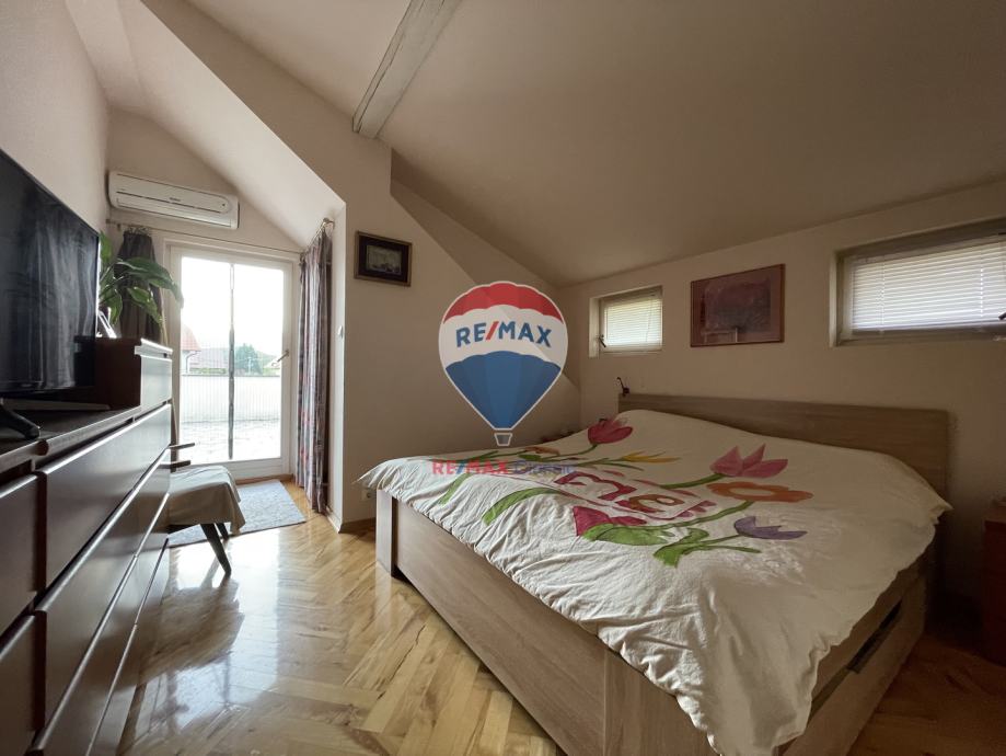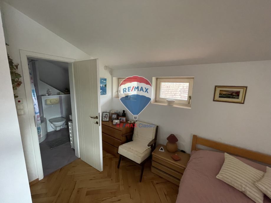 - Potkrovlje: sastoji se od dvije prostrane spavaće sobe od kojih svaka ima svoju kupaonicu, walk-in ormare i obje imaju klima uređaj te izlaz na terasu sa prekrasnim pogledom na Medvednicu.