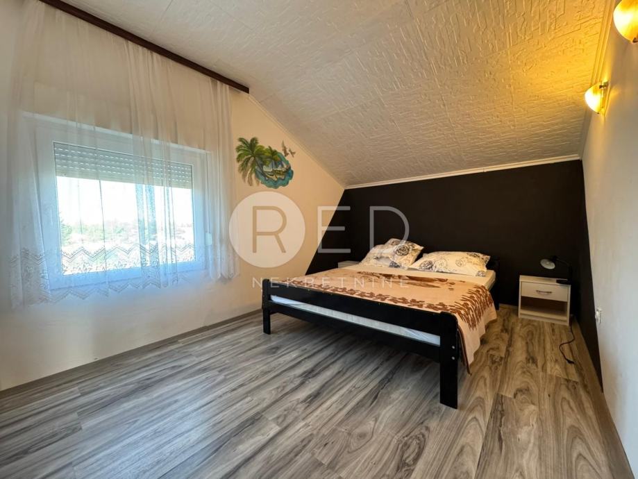 Na katu se nalaze 4 spavaće sobe, dnevni boravak s kuhinjom, kupaonica i terasa.