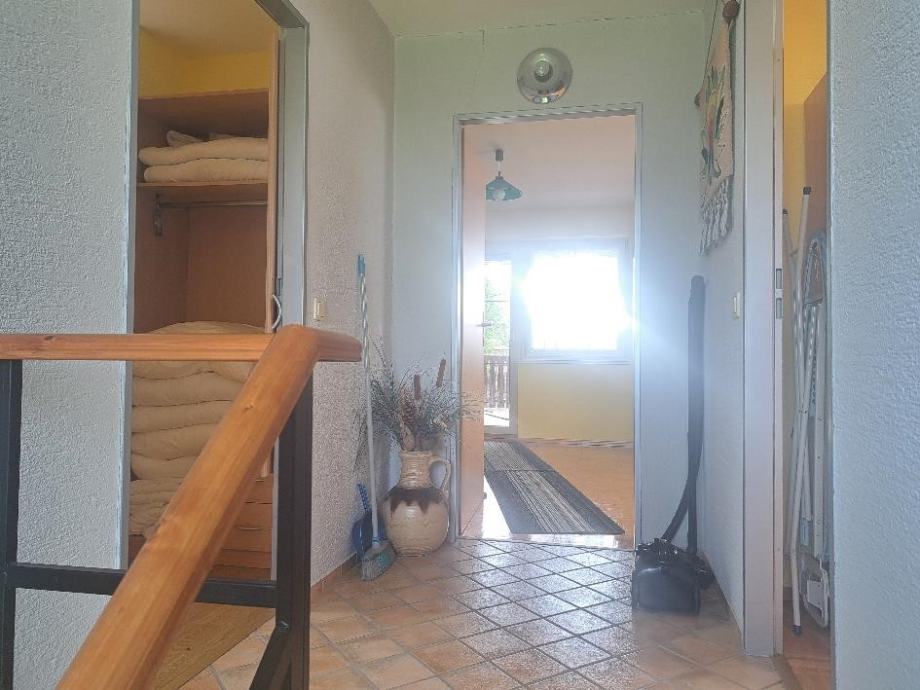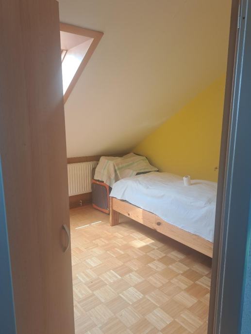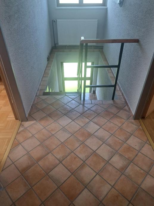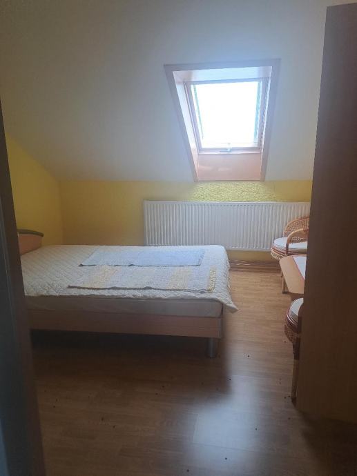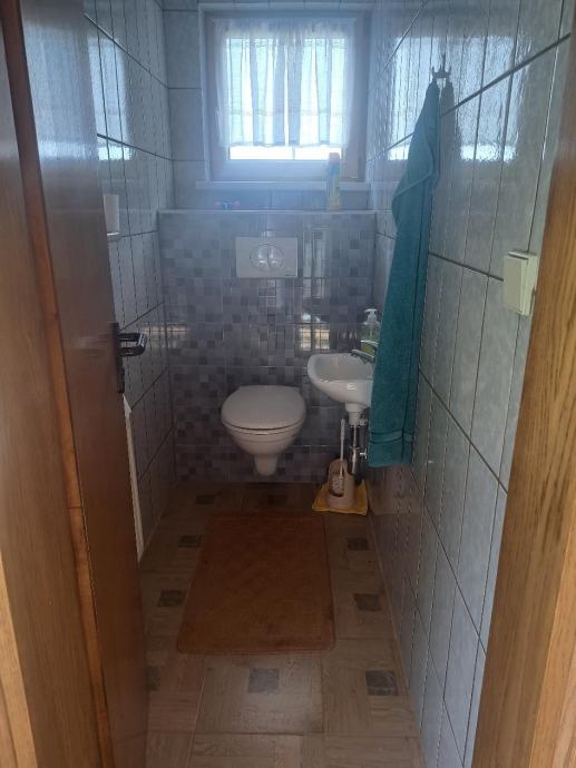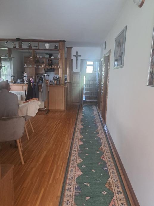 Kuća katnica dimenzija bruto 12x16m, sastoji se od prizemlja u kojem se nalazi prostorija s kombiniranim bojlerom na plin, peći za centralno grijanje na drva te hidrofor. Također se nalazi blagovaona s kuhinjom i dnevnom sobom. Na prvom katu se nalazi kuhinja, blagovaona i dnevna soba, dvije spavaće sobe te odvojeni WC i kupaona s tuš kabinom. U potkrovlju se nalaze dvije spavaće sobe, dnevni dio, te WC posebno i kupaona s tuš kabinom. Iz dnevne sobe se izlazi na veliku natkrivenu terasu. U dvorištu se nalazi zgrada u kojoj je garaža, te dio s 4 prostorije. Kuća se nalazi na jednoj čestici. Kuća posjeduje gradsku vodu te bunar s hidroforom, struju te plin. PVC stolarija, centralno grijanje. Energetski certifikat tip "C"