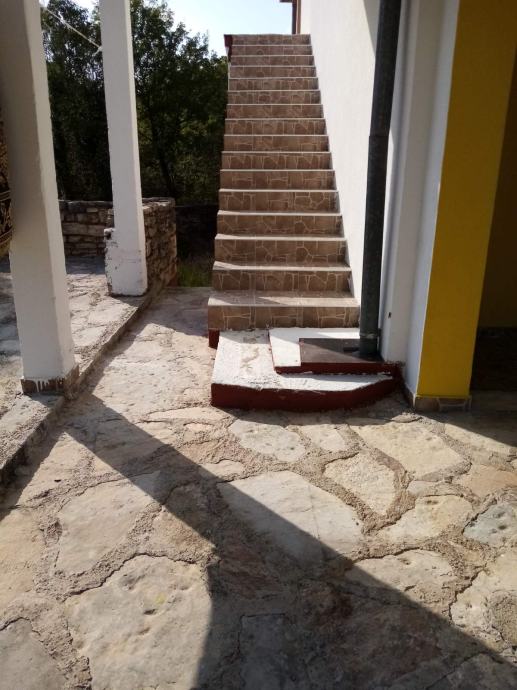 Na prodaju kuća, na ulazu u zaseok Macure iz pravca Kistanja, na putu za Benkovac, uz glavnu cestu, katnica, u osnovi dimenzija 17x8,5m. Prizemlje je uređeno i namješteno u ukupnoj površini od 66m2 korisnog prostora, dok je kat neizrađen u površini od 100m2. Prizemlje je organizirano kao 3soban stan, 2spavaće sobe, dnevni boravak sa blagovaonicom i kuhinjom i kupatilo. U prizemnom dijelu je terasa površine 65m2, obložena kamenom. Sve je namješteno novim namještajem. U sklopu kuće je garaža dimenzija 7,5x4m, sa kanalom, kao i prostorija predviđena za kamin i ognjište. Kuća ima i podrum 5x3x3m i spremnik za vodu kišnicu (gusterna).