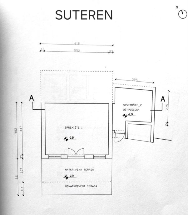 U suterenu je smješteno spremište od 10 m2, natkrivena terasa i velika prostorija od 25 m2 koja pruža razne mogućnosti uređenja (ured, teretana, garsonijera...)