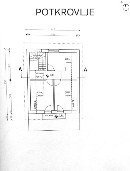 U pokrovlju su smještene 3 spavaće sobe i balkon.