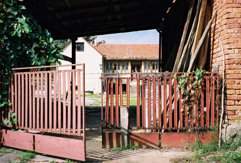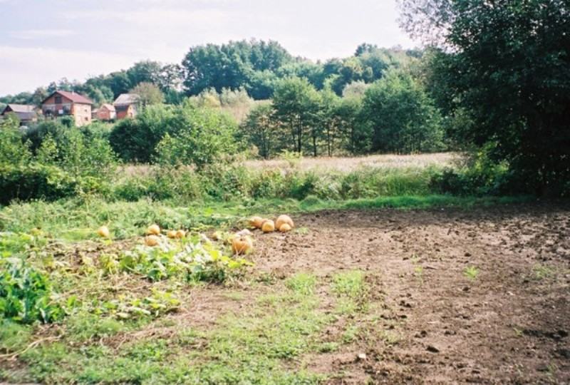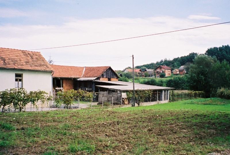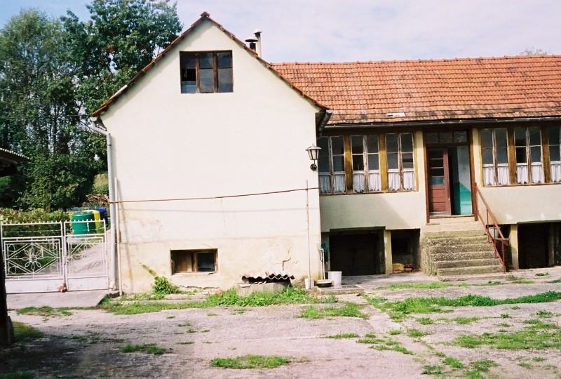 Klenovnik centar, kuća s ogromnim dvorištem, gospodarskim zgradama i livadama a u pozadini potok.
