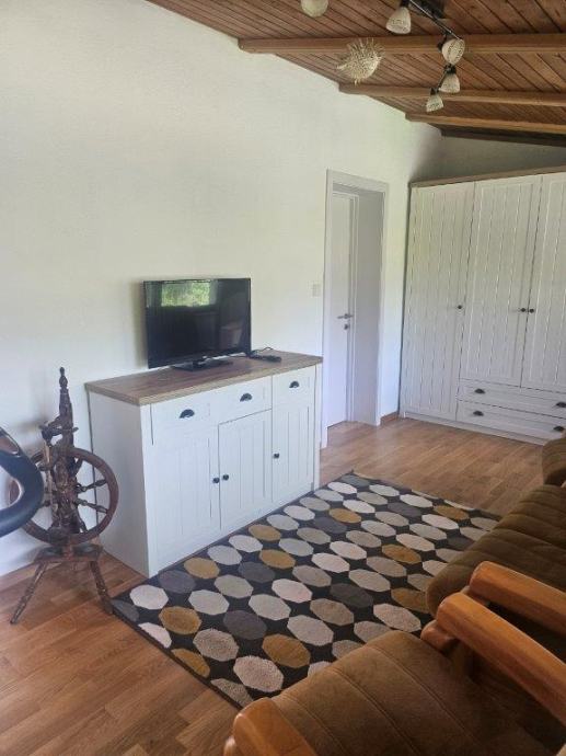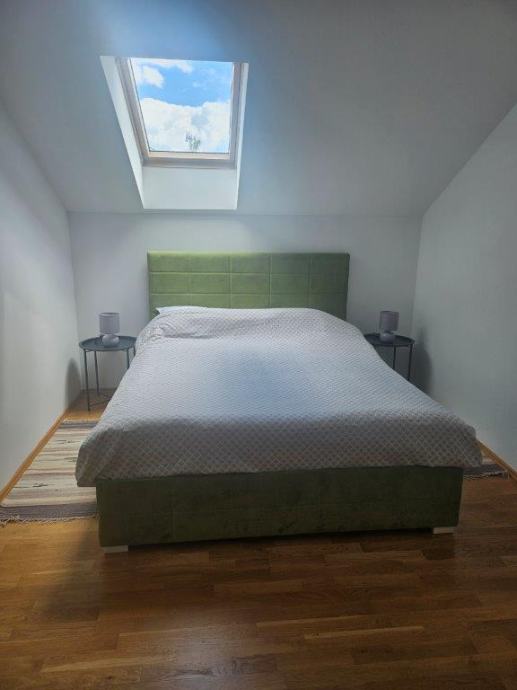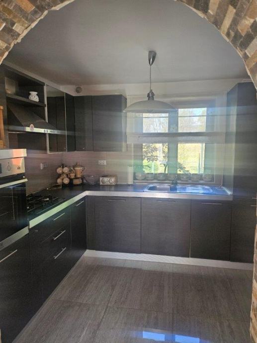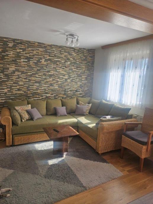 Iznajmljuje se dugoročno kuća u Klinča Selu površine 125m2. Kuća se sastoji od kuhinje(pećnica,perilica posuđa,ledenica hladnjak,napa,ploča za kuhanje i sudoper,blagavaone(stol i 8 stolica)dvije dnevne sobe ( 2xTV, kutna garnitura i dvosijed sa 2 fotelje) kupaonice sa WCom i tuš kadom,posebno WC,dvije spavaće sobe( kreveti 160x200, noćni ormarići, gardetobni ormari) Kuća je u potpunosti renovirana, namještena i spremna za useljenje. U dvorištu je garaža za jedno vozilo, terasa sa pogledom i roštilj.