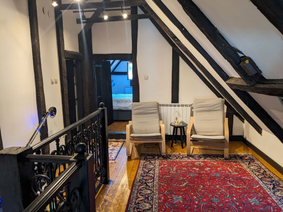 Jedinstvena prilika za kupnju potpuno obnovljene, 200 godina stare kuće napravljene od punog hrasta. Na ranču trenutcno zive i tri konja lipicanaca u potpuno ograđenoj parceli od jednog hektara ,sve u jednom komadu. Papiri su čisti i vlasništvo je 1:1. Prilaz je blok popločen. U vrtu se nalaze odrasla i etablirana stabla vocki, grmovi bobičastog voća i cvijeće - sve okruženo vlastitom privatnom šumom. Nekretnina se nalazi na mirnoj lokaciji, samom kraju sela i u srcu prirode i osigurava mir i privatnost. Ivanić Grad udaljen je samo 15 minuta vožnje automobilom.