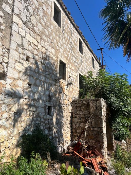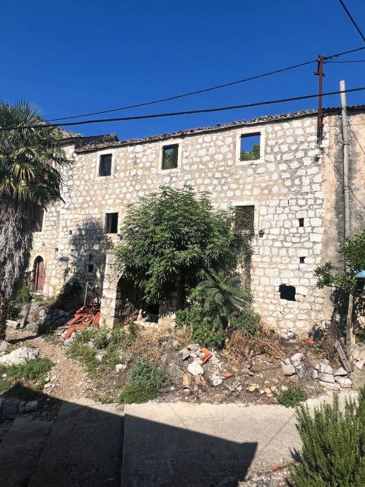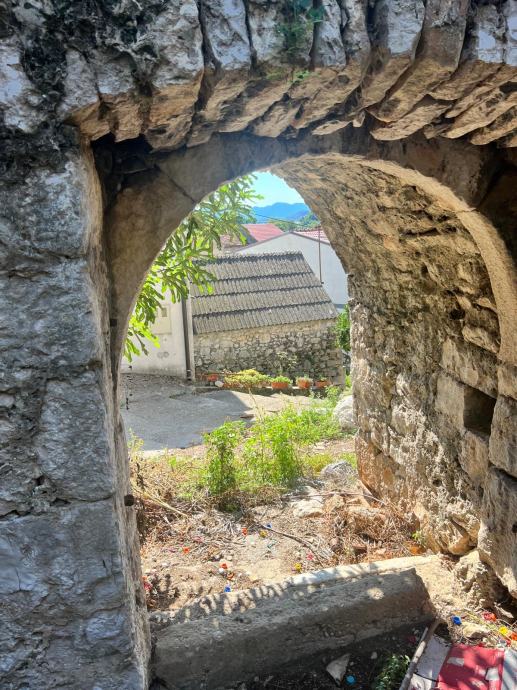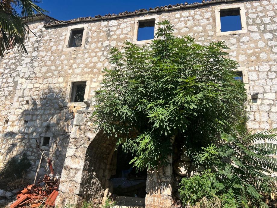 Na prodaju je kamena kuća u ruševnom stanju tlocrtne kvadrature 120m2 koja se nalazi na građevinskom zemljištu površine 163m2.